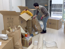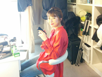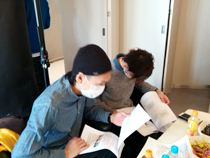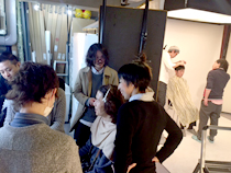 | ▲手前はメイク練習、奥では撮影用の ヘアメイクの同時進行です。 |