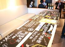 | ▲第二創業出航式を執り行いました。 手作りのボードを用意しました。 |