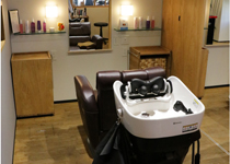 ▲シャンプー台がお客様の席に 移動できるようになっています。 |