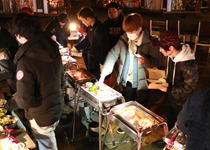| ▲生憎の雨で寒かったけど BBQも盛り上がりました。 |