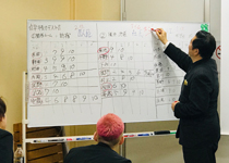 | ▲理念をしっかり覚えているか チームに別れて早さを競います。 |