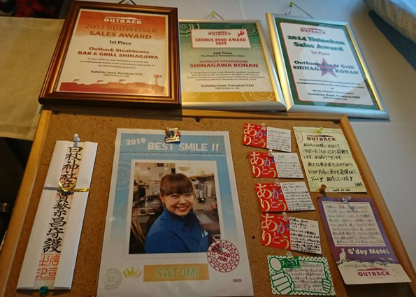 | ▲アウトバック横浜店さんでの ベンチマークに参加して来ました。 | ▲ありがとうカードが貼られたボード。 ベストスマイル賞、いいですね! |