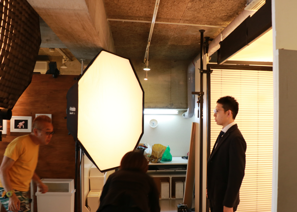 | ▲最高にカッコいい写真が撮れる様に スタイリングにも気合が入ります。 | ▲色んな表情を撮影します。 お疲れ様でした! |