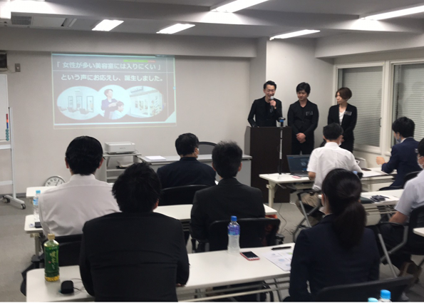 | ▲写真撮影で一時的にマスクを外します。 頑張るぞ! | ▲緊張のプレゼンですが、しっかり 準備してきたのでよく出来ました。 |