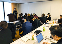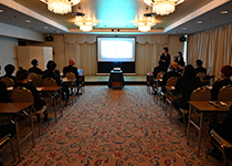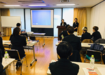 | ▲広々とした会場です。 発表の間は静寂に包まれます。 | ▲各店舗、各委員会からの 発表を行いました。 |