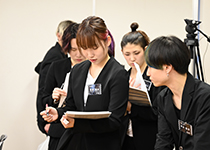 | ▲発表会に向けて 最終確認をします。 | ▲新入社員にとっては初めての発表会。 緊張感が高まります。 |